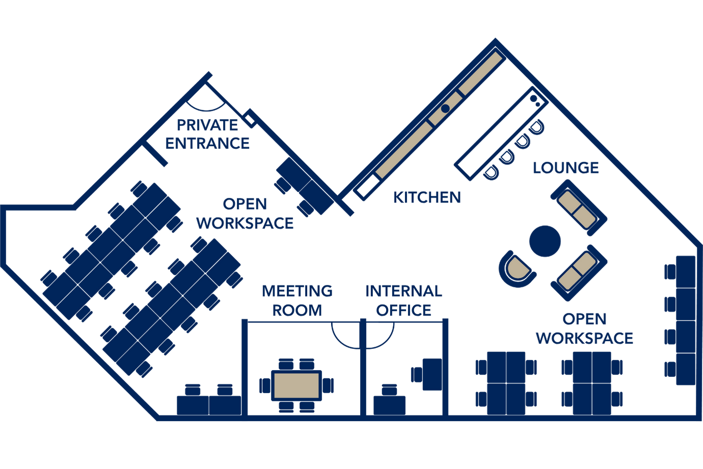 - Full access to coworking space amenities, including lounges and bookable meeting rooms.